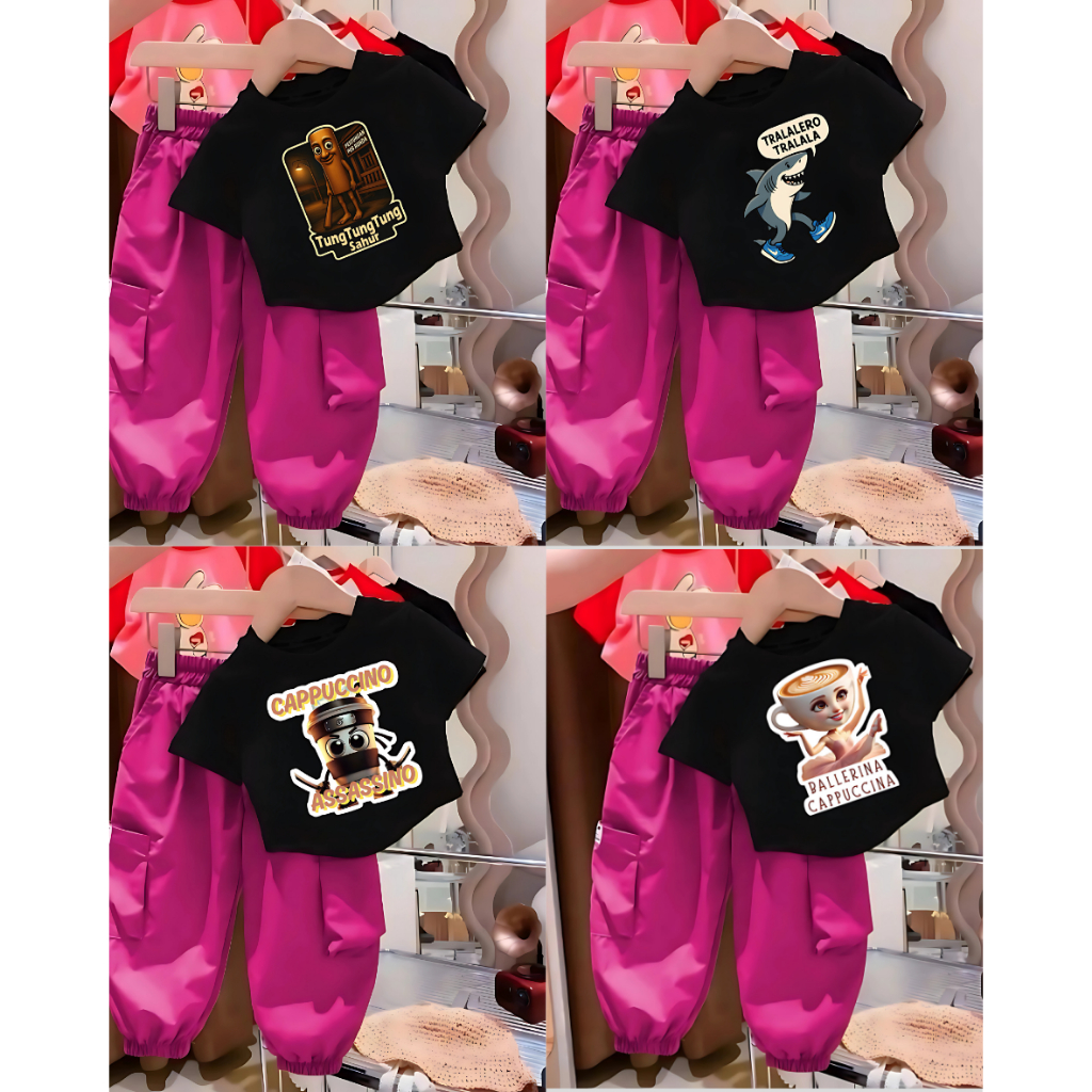 Setelan Kaos Anak Anomali Viral “cappucino assasino” Usia 1-5 Tahun – Baju Santai Lucu & Adem