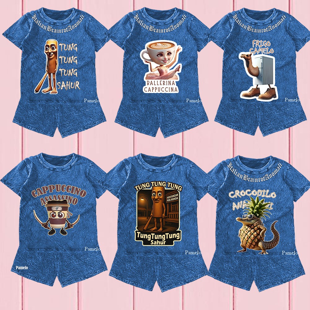 Setelan Anak Tung Tung Sahur DENIM Unisex Anomali Brainrot italia One set Anak Stone Wash Set Distro Basic Anak