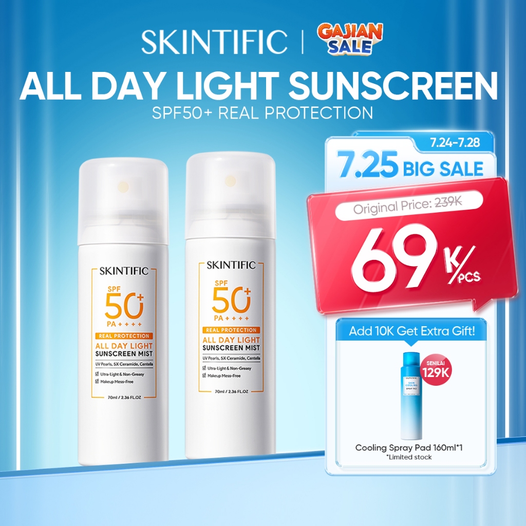 SKINTIFIC - All Day Light Sunscreen Mist SPF 50 PA++++ 70ml | Sunscreen Spray UV Mist Tone Up Sun Shield Sunscreen