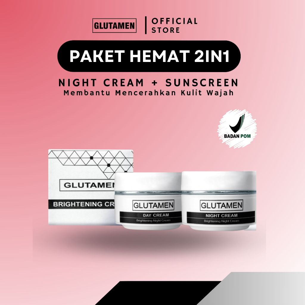 Glutamen Skincare Paket 2in1 Cream Siang dan Night Cream Penghilang Noda Hitam Wajah Bekas Jerawat Pria Resmi BPOM