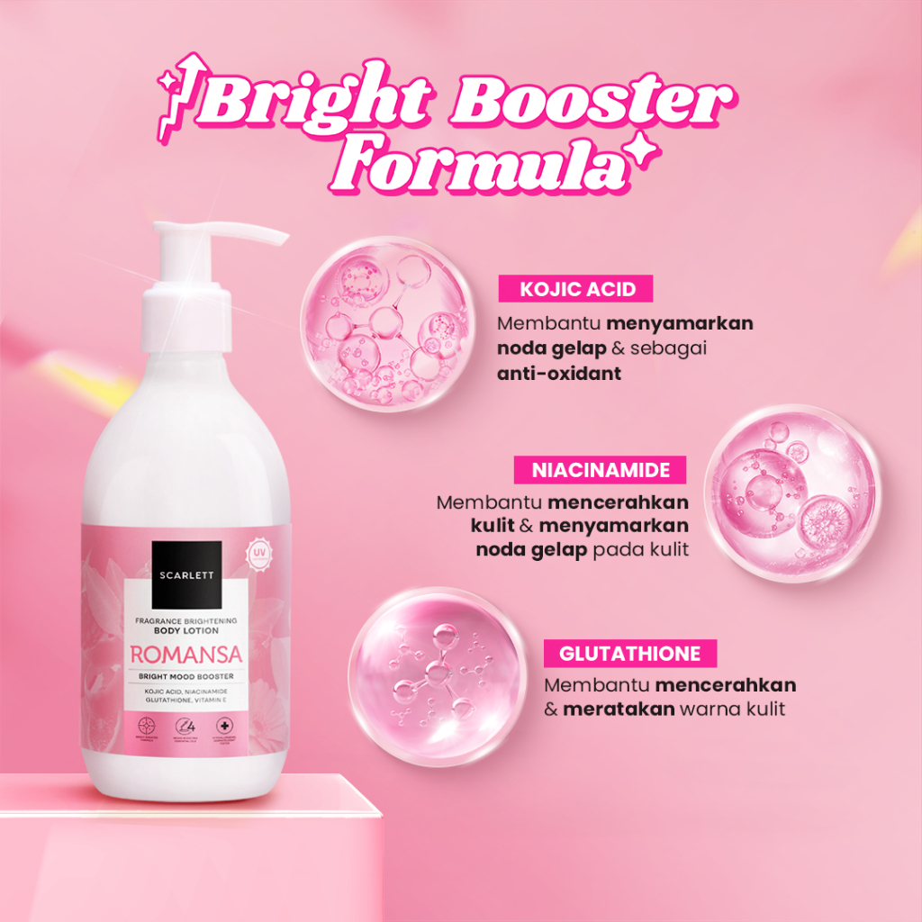Scarlett Whitening New! Fragrance Brightening Body Lotion Bright Mood Booster Romansa