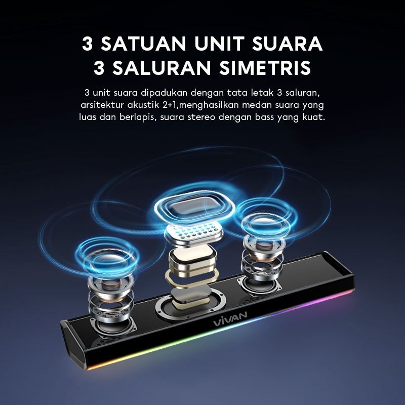 VIVAN Bluetooth Soundbar TV Super Bass RGB LED Lampu TWS Interkoneksi BT 5.4 S2 Garansi 12 Bulan