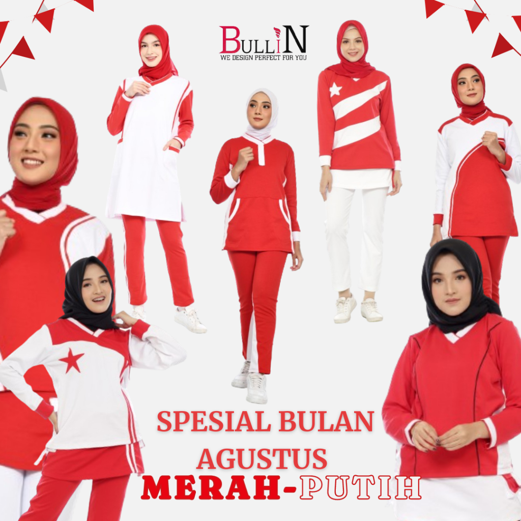 Setelan olahraga Wanita Merah Putih Standar dan Jumbo/Set Olahraga Wanita