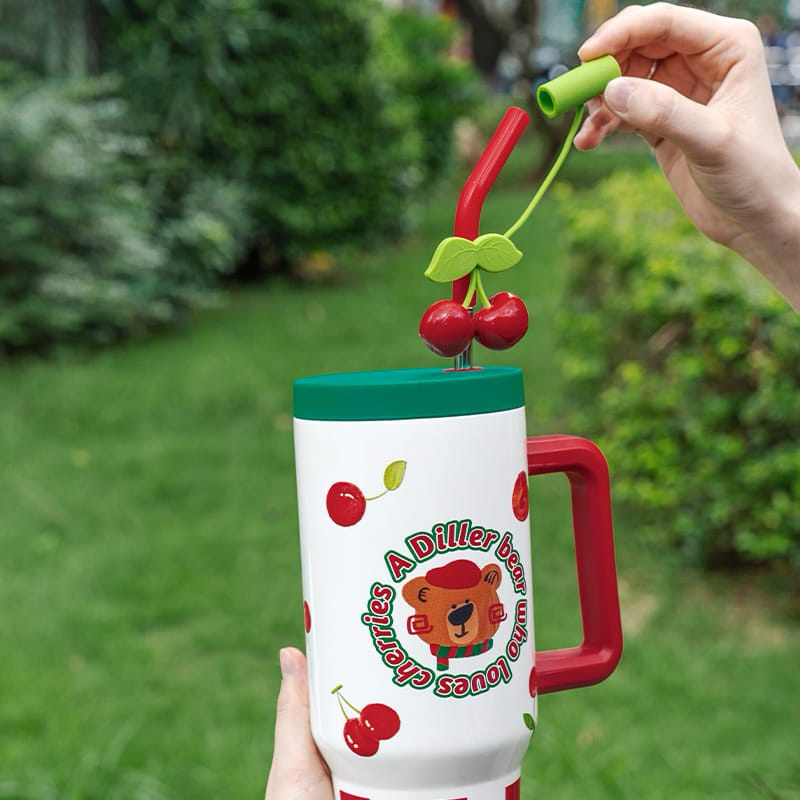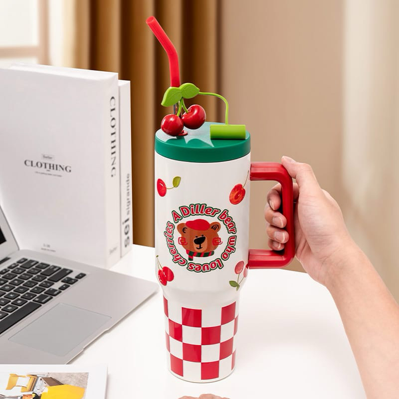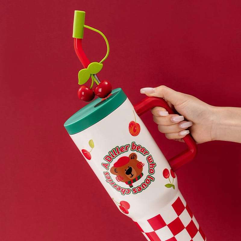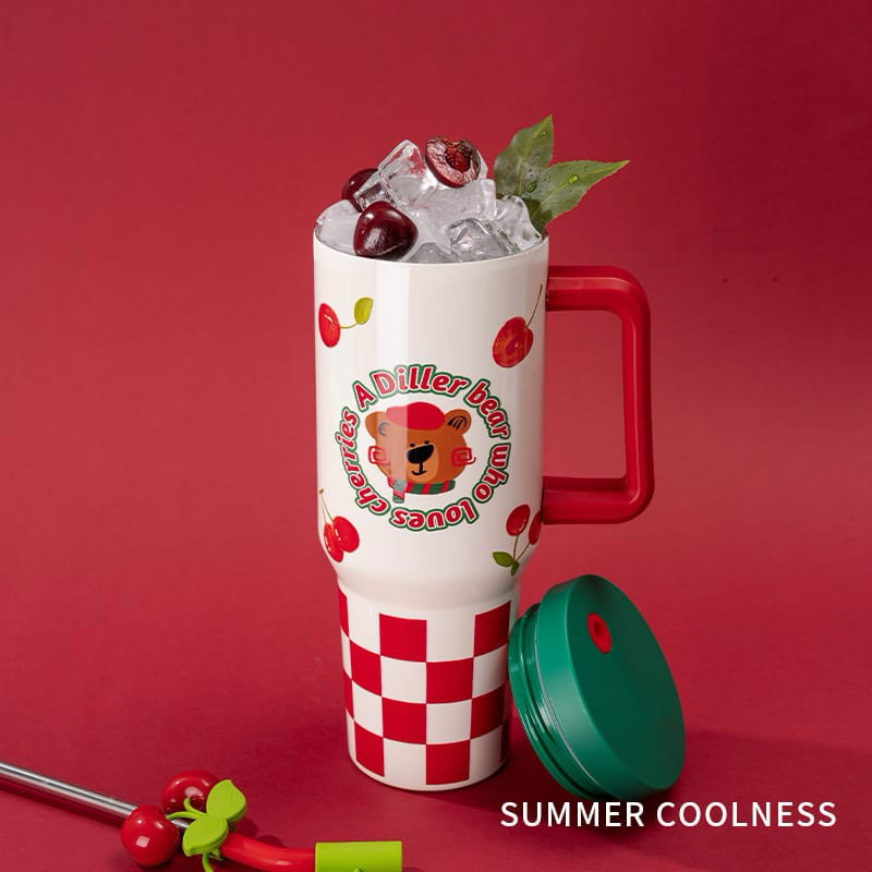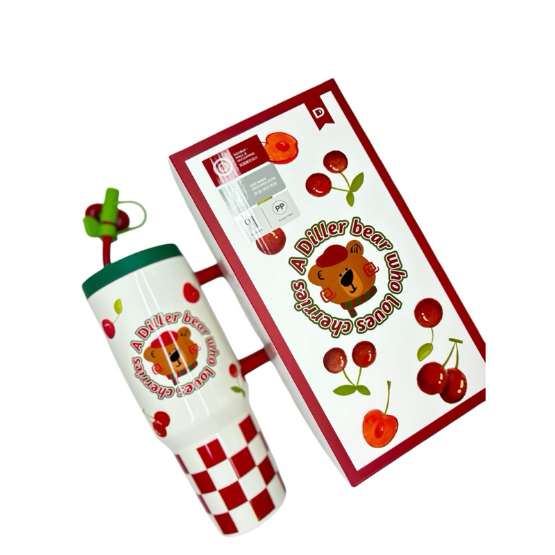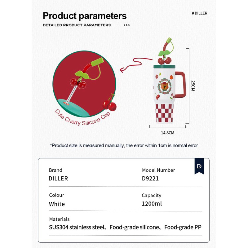 Tumbler Diller Cherry Tumbler Tahan Panas Dingin 24 jam Botol Minum Stainless Steel 304 1200ml Aesthetic