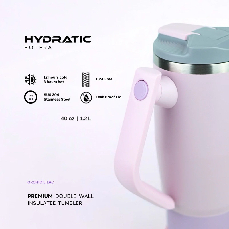 BOTOL MINUM TUMBLER HYDRATIC BOTERA PREMIUM 40oz / 1,2 L - ORCHID LILAC - Tahan Panas Dingin 12 - 18 jam - Stainless Ste