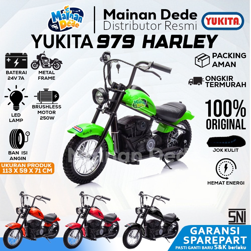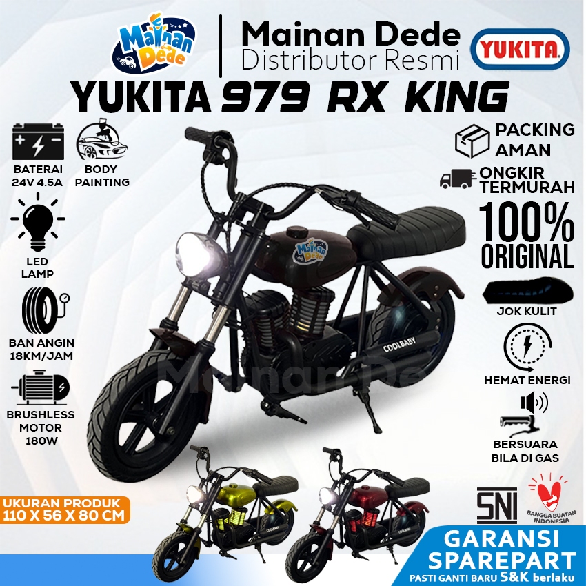 Mainan Anak Motor Aki Anak Yukita 979 Harley Motorcycles Yukita 979 RX KING Yukita979 Ban Isi Angin Jok Kulit Lampu LED