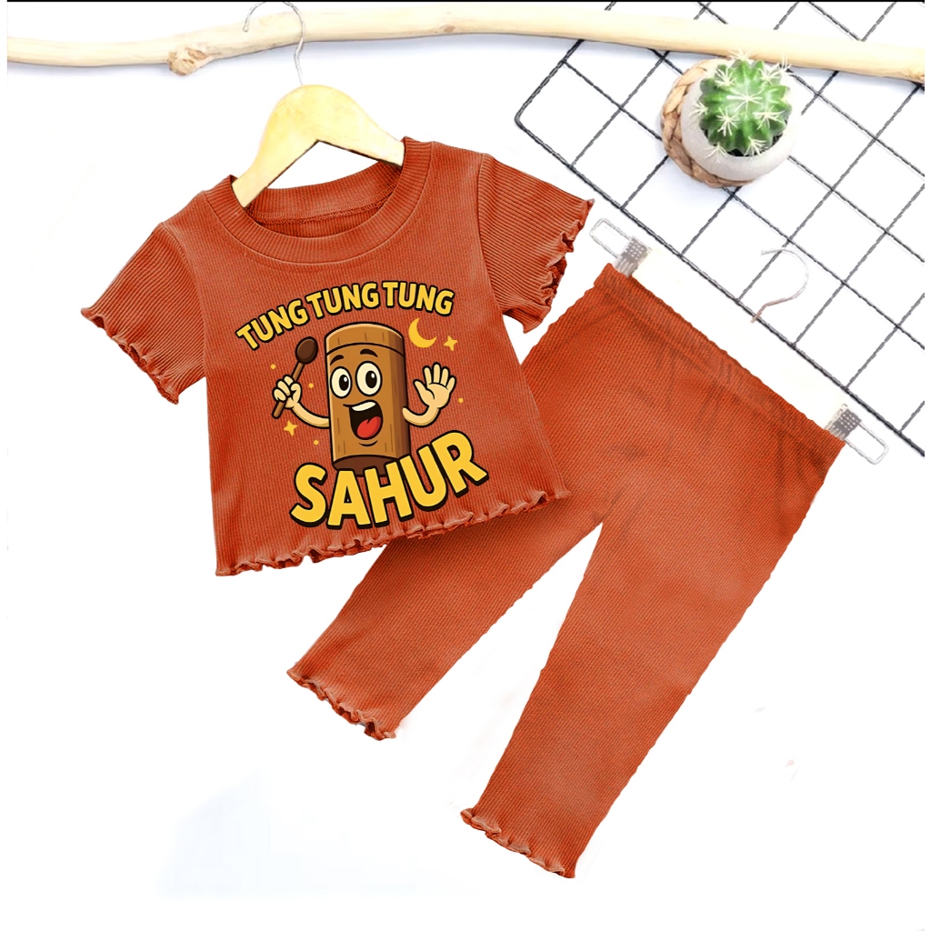 Setelan Baju Anak Tung Tung Sahur Anomali Perempuan Panjang Usia 1 2 3 4 5 Tahun