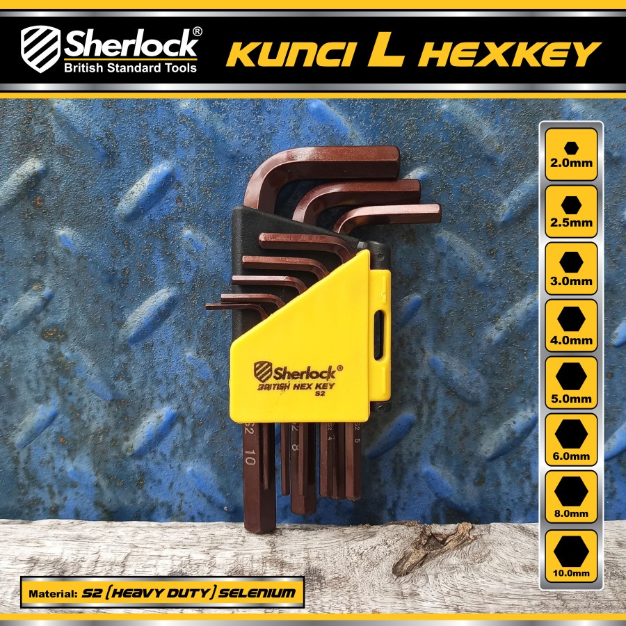 Kunci L Set 8 pcs mm (Pendek) Original Sherlock Kunci L Hexkey Material S2 (Heavy Duty)