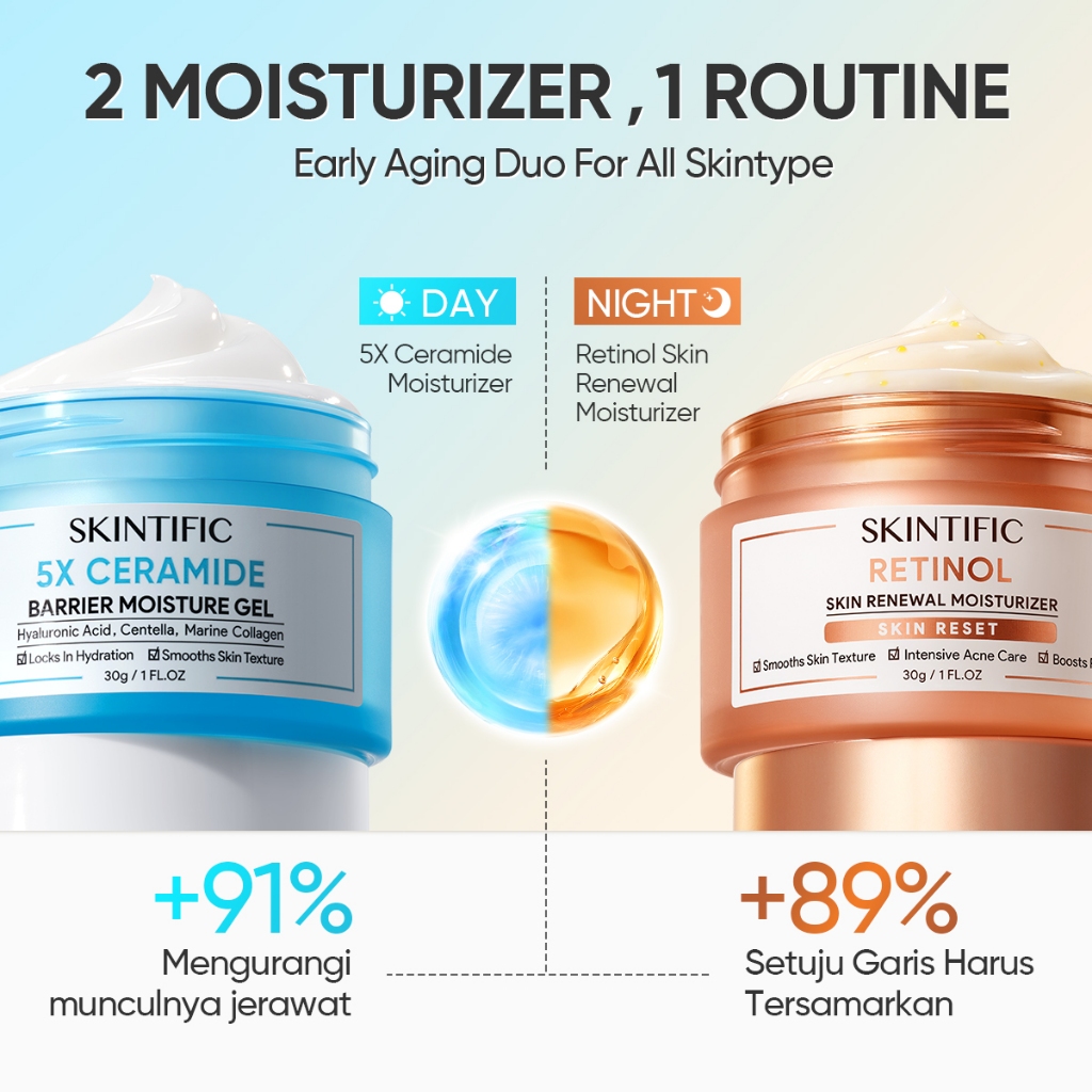 SKINTIFIC - Day Cream Night Cream 377 Dark Spot + Retinol Skin Renewal Moisturizer 30g | Pelembab Wajah Serum Wajah