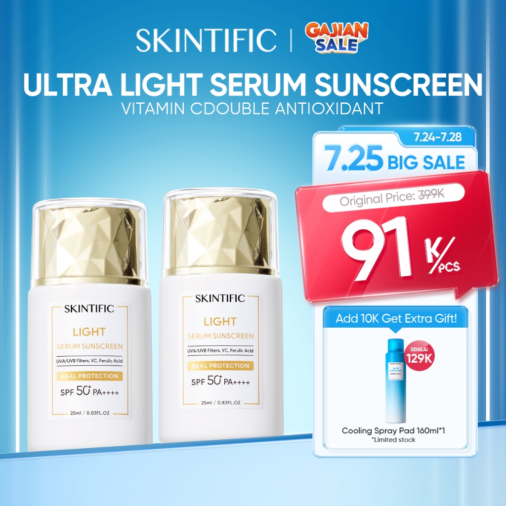SKINTIFIC - Light Serum Brightening Sunscreen SPF 50+ PA ++++ 25ml | Vitamin C Whitening Mencerahkan