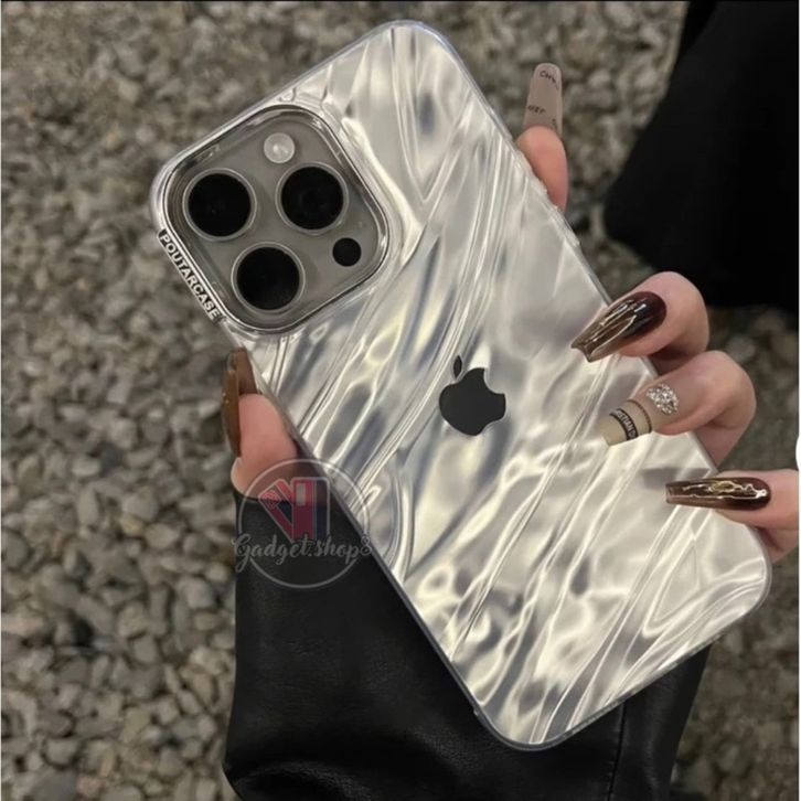 ( HARGA PROMO ) Metalic Hologram Dazzle Wave Case Logo IPHONE X XR XS MAX 11 12 13 14 15 PRO MAX 14+ 15+ PLUS Hologram W