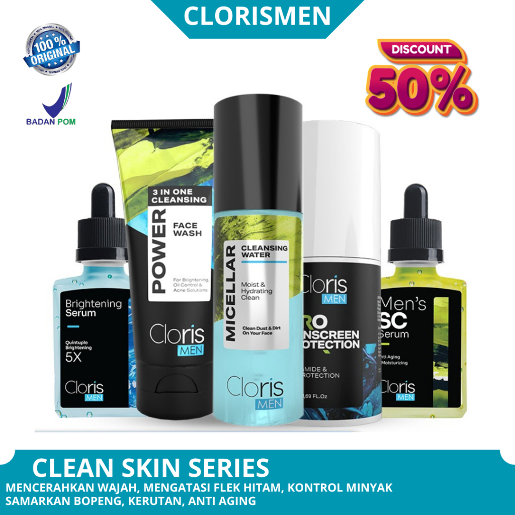 Clorismen Clean Skin Series Paket Skincare Lengkap Pencerah Wajah Kusam Flek Bopeng Atasi Jerawat