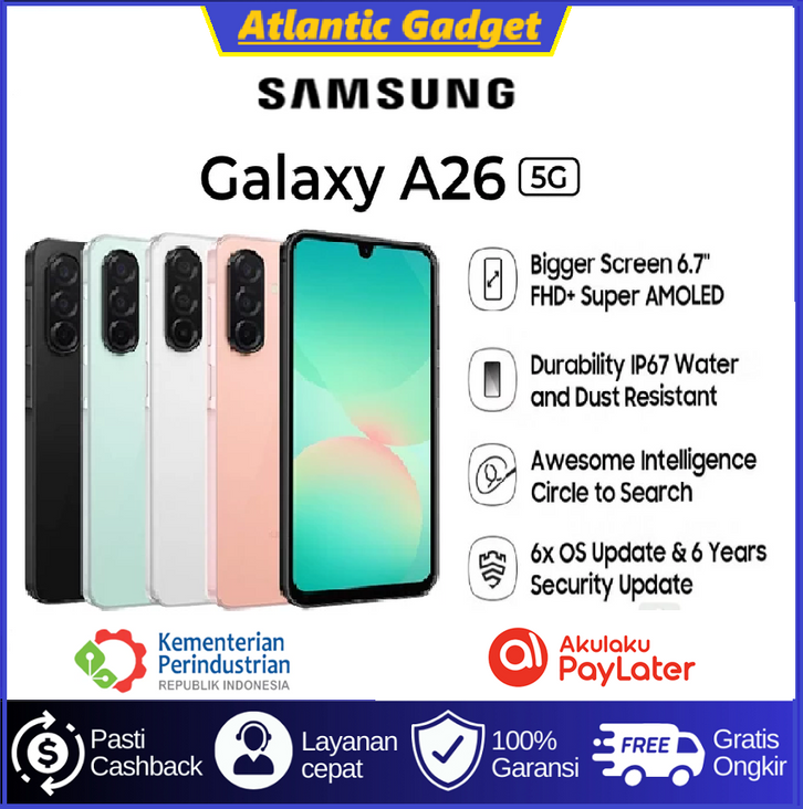 Samsung A26 5G 8/256GB | AI Smartphone | Exynos 1380 | Kamera 50MP OIS | Layar 6.7" Super AMOLED 120Hz | 5000mAh 25W