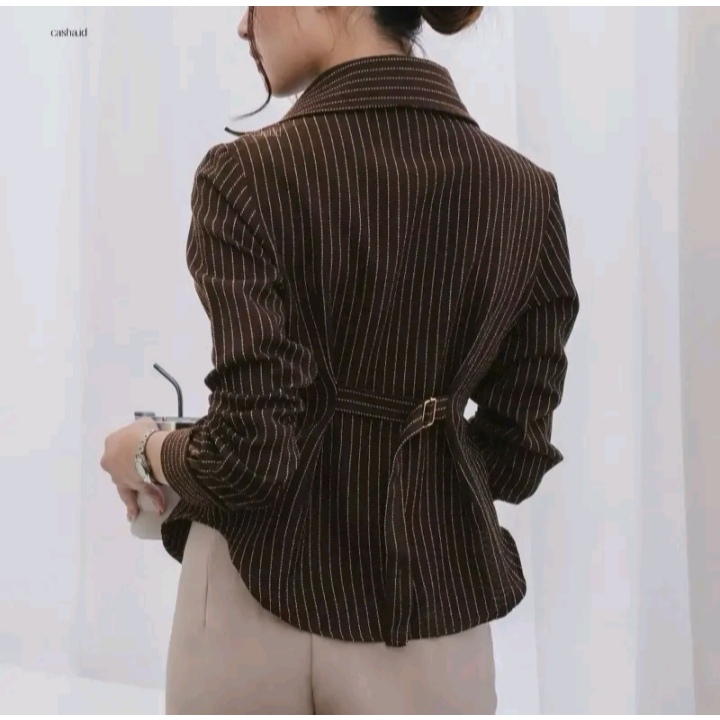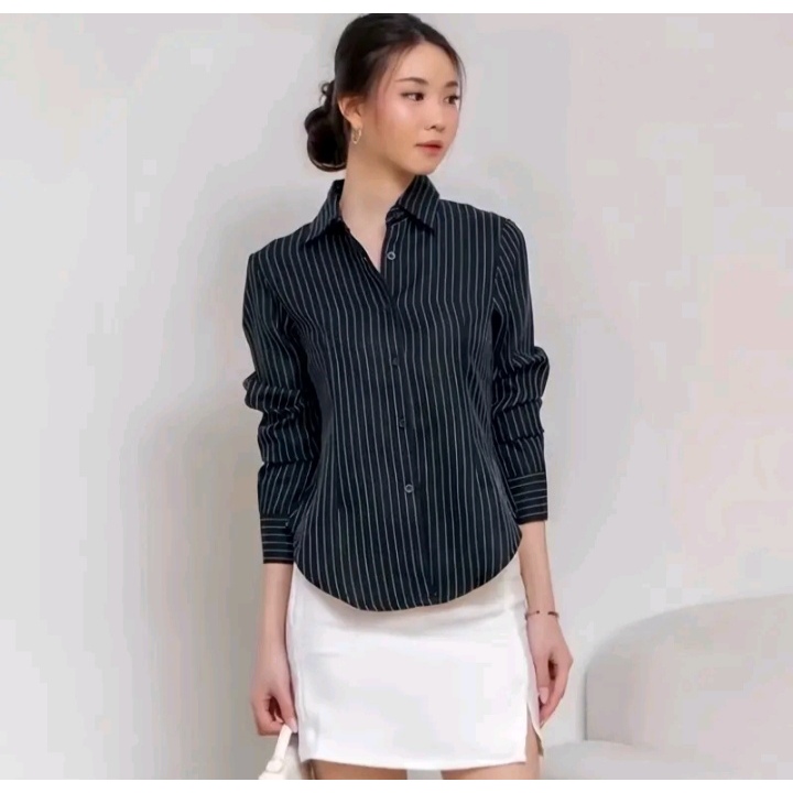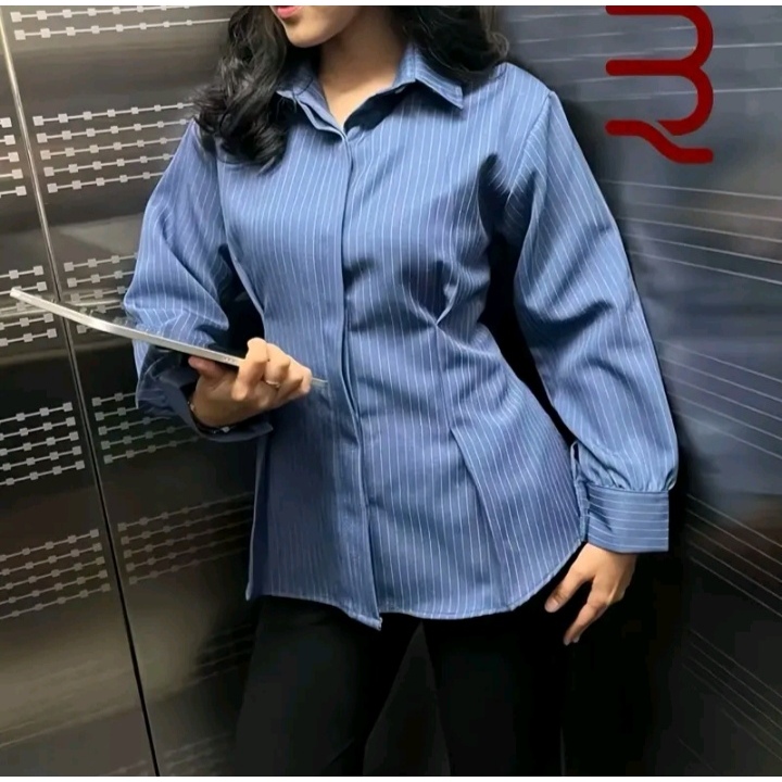 Kemeja Wanita Fitted Body Lengan Panjang Salur