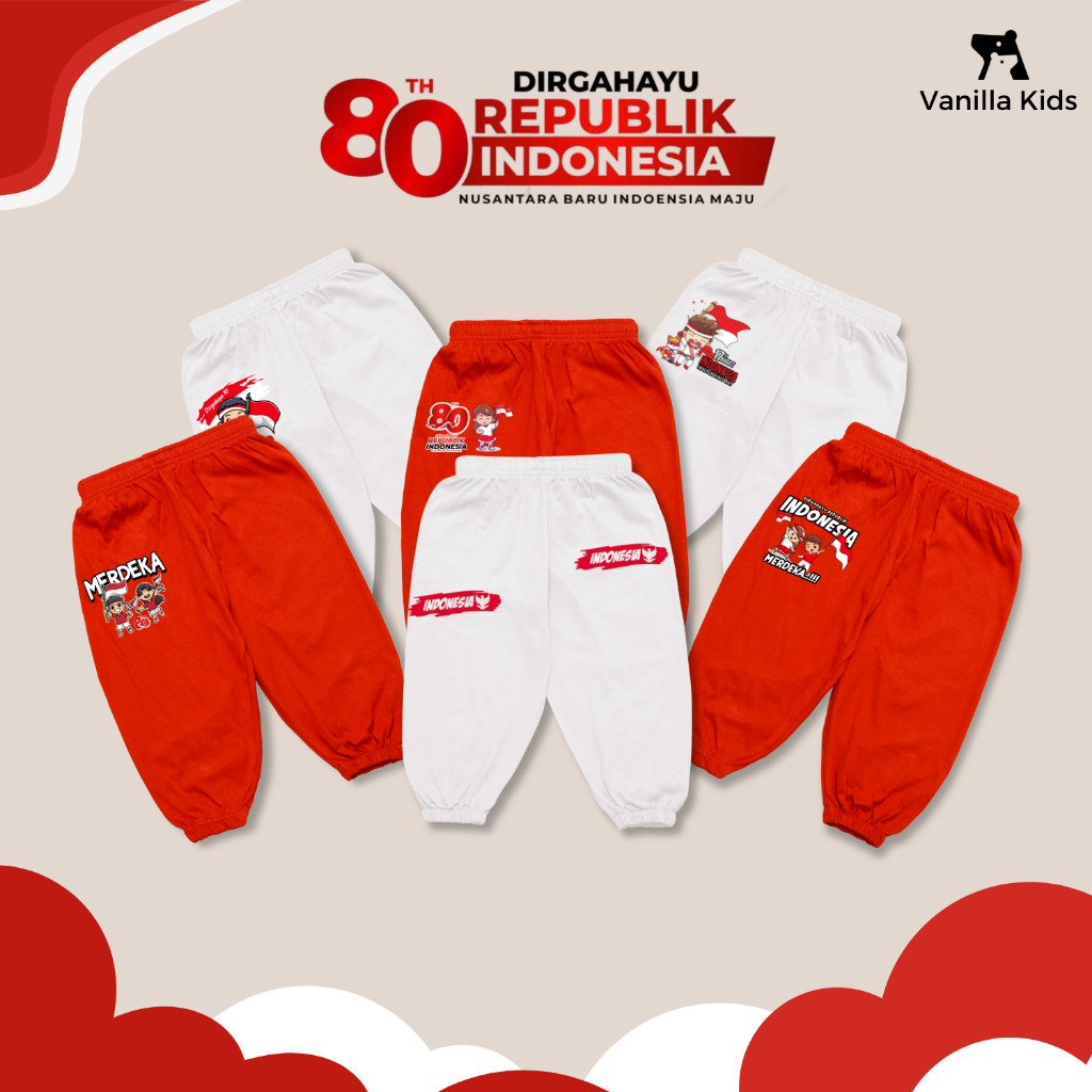 celana panjang jogger anak laki laki dan perempuan merdeka agustusan HUT Kemerdekaan RI ke 80 agustus celana joger