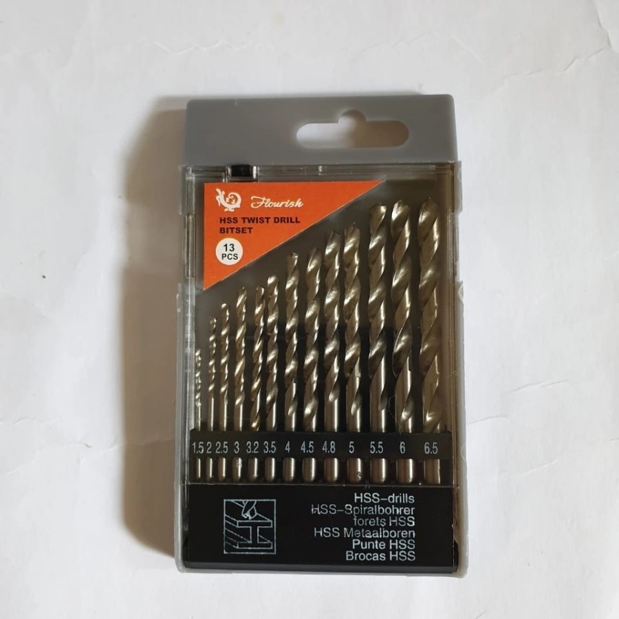 Mata Bor Besi HSS Set 13pcs - Drill Bit Set Spare Part ( UKURAN 1.5-2-2.5-3-3.2-3.5-4-4.5-4.8-5-5.5-6-6.5 )Berbahan High