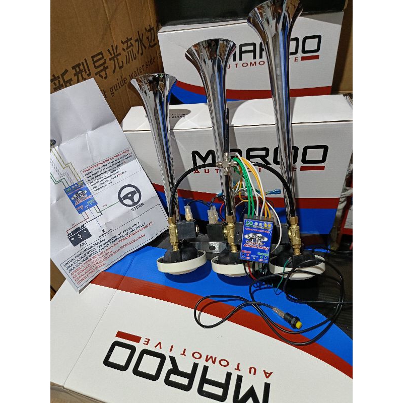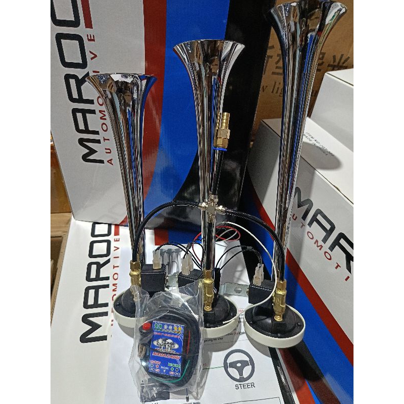 Klakson Telolet 3 Corong 17Nada & 56Nada Basuri 12V/24V Mobil Truk & Bus Klakson Angin