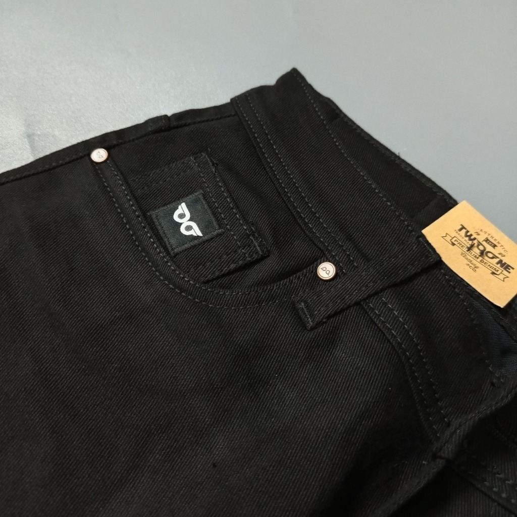 TWO ONE Celana Jeans Panjang Pria Slim Fit Denim Stretch Hitam Pekat