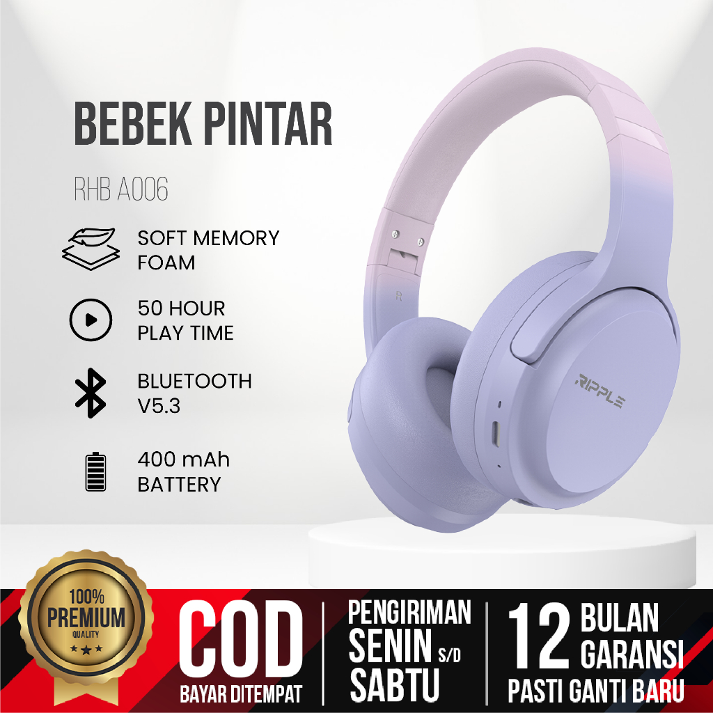 [Mall] BEBEK PINTAR FOLDABLE PURPLE WIRELESS HEADPHONE BLUETOOTH 5.3 HD AUDIO QUALITY GAMING MUSIC HEADSET