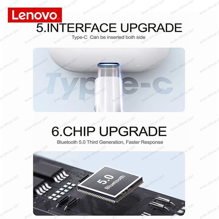 Earphone Bluetooth HT38 TWS With Mic Stereo Noice Reduction Waterproof & Sweatproof Lenovo