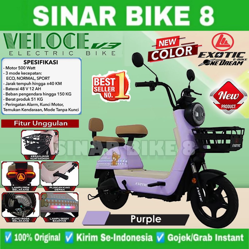 Sepeda Listrik Exotic VELOCE V3 bergaransi