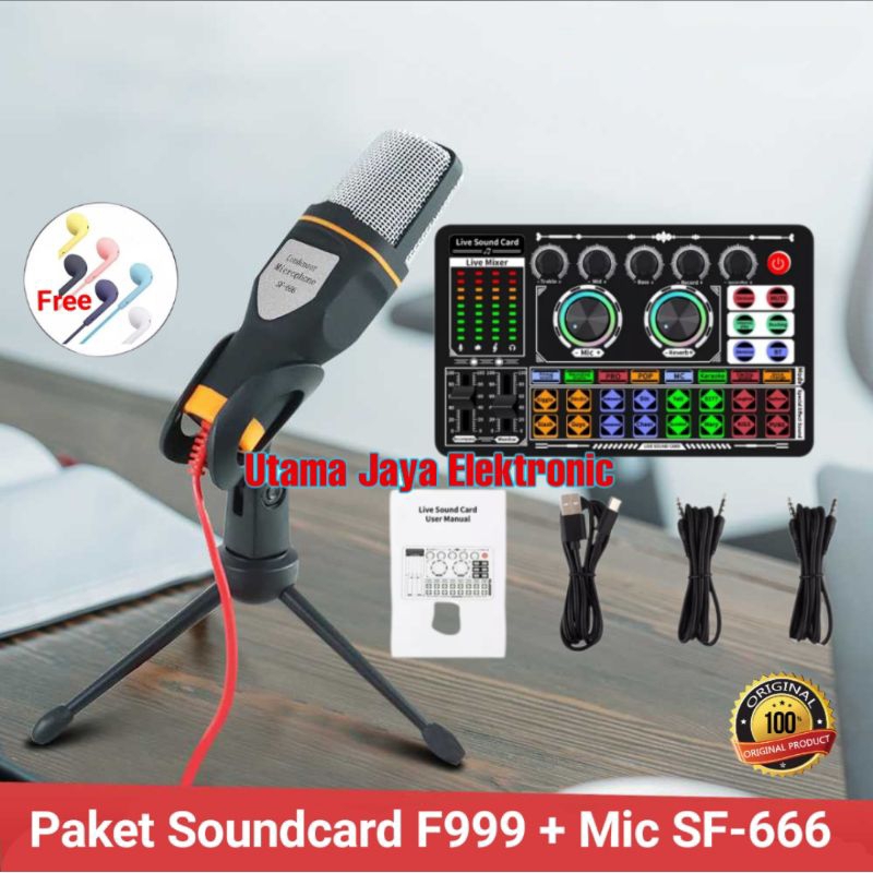 NEW ORIGINAL Paket Premium Mic SF666 Soundcard F999 Full Set Condenser Live Streaming