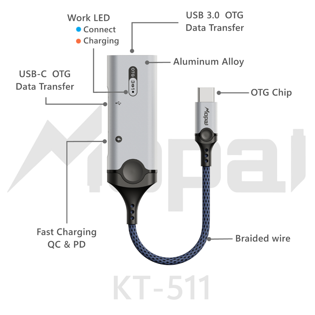 Cortex Power - MH366 Type-C To USB 3.0 OTG Soundcard + 60W Charging 2in1 Adapter