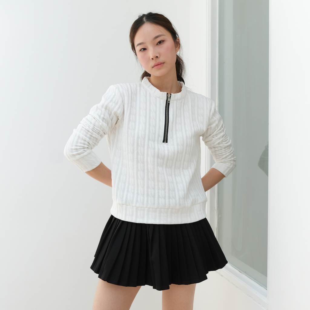 SAGI - CABLE UPPER ZIP KNIT SWEATER | ATASAN LENGAN PANJANG RAJUT JAKET KNIT WANITA | OUTER WANITA