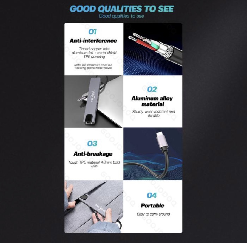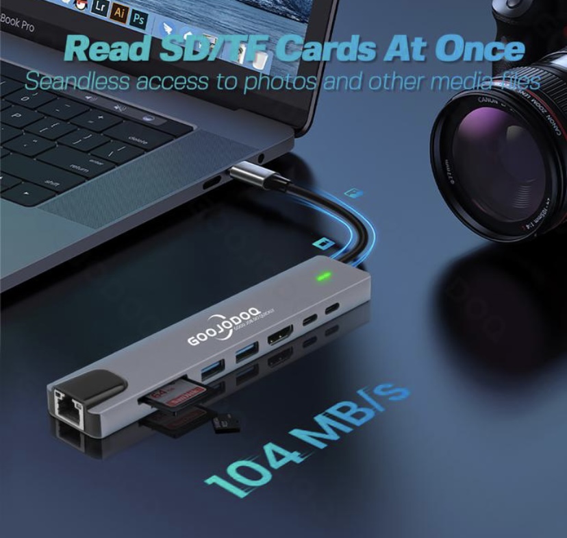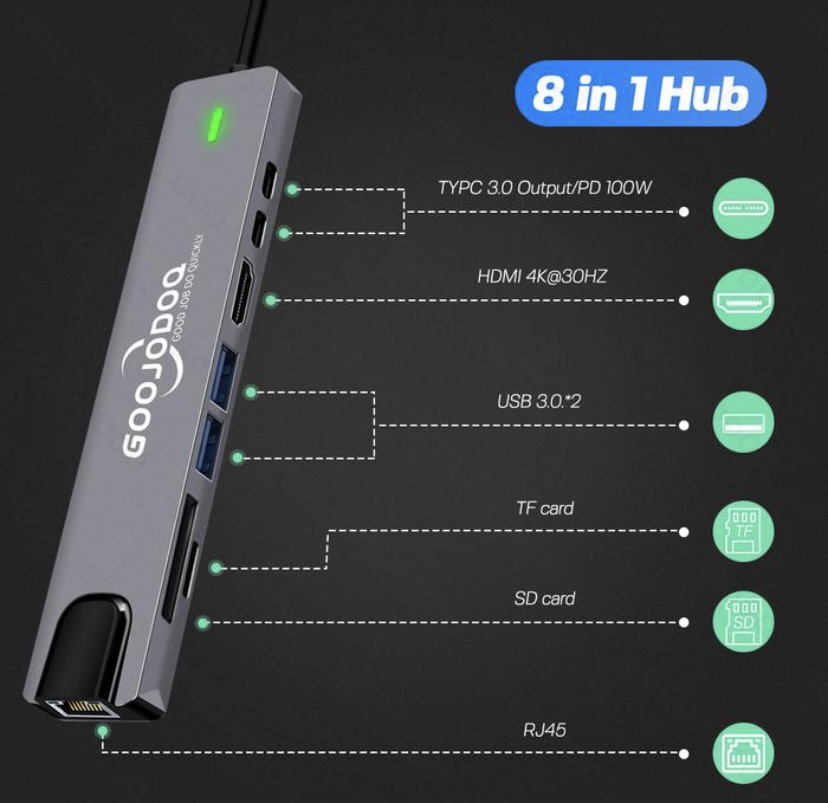 USB Hub Type-C 3.1 to 4k HDMI-Compatible RJ4B USB SD/TF Card Reader PD Fast Charger 8-in1