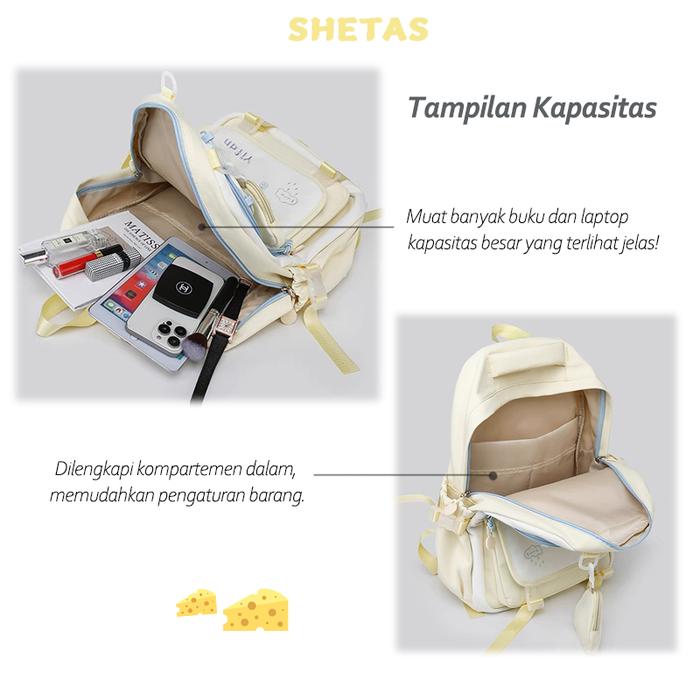 SHETAS Tas Ransel Anak Sekolah Cewek Cowok Multifungsi Motif Bordir Warna-Warni New Arrival