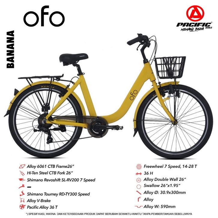 TERBARU Sepeda Dewasa Keranjang Mini 26 PACIFIC Ofo Alloy Terbaru