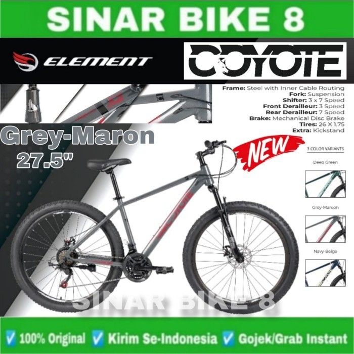 TERBARU Sepeda Gunung MTB ELEMENT COYOTE Ukuran 26 dan 27.5 Inch Inner Cable Rem Cakram