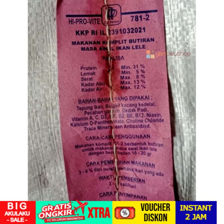 Pelet Pakan Ikan Lele,Bawal,Nila,Gurame, Patin 781-2 Paket 10Kg BAHAN PREMIUM