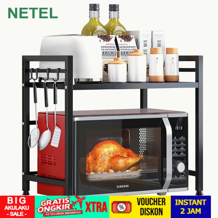 NETEL Rak Rapur Serbaguna Rak Microwave Stainless Steel Dan Oven Untuk Dapur Susun Penyimpanan Ukuran Yang Bisa