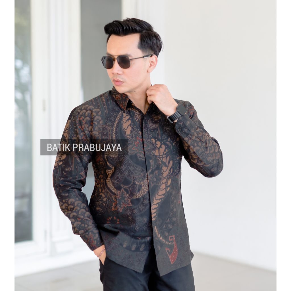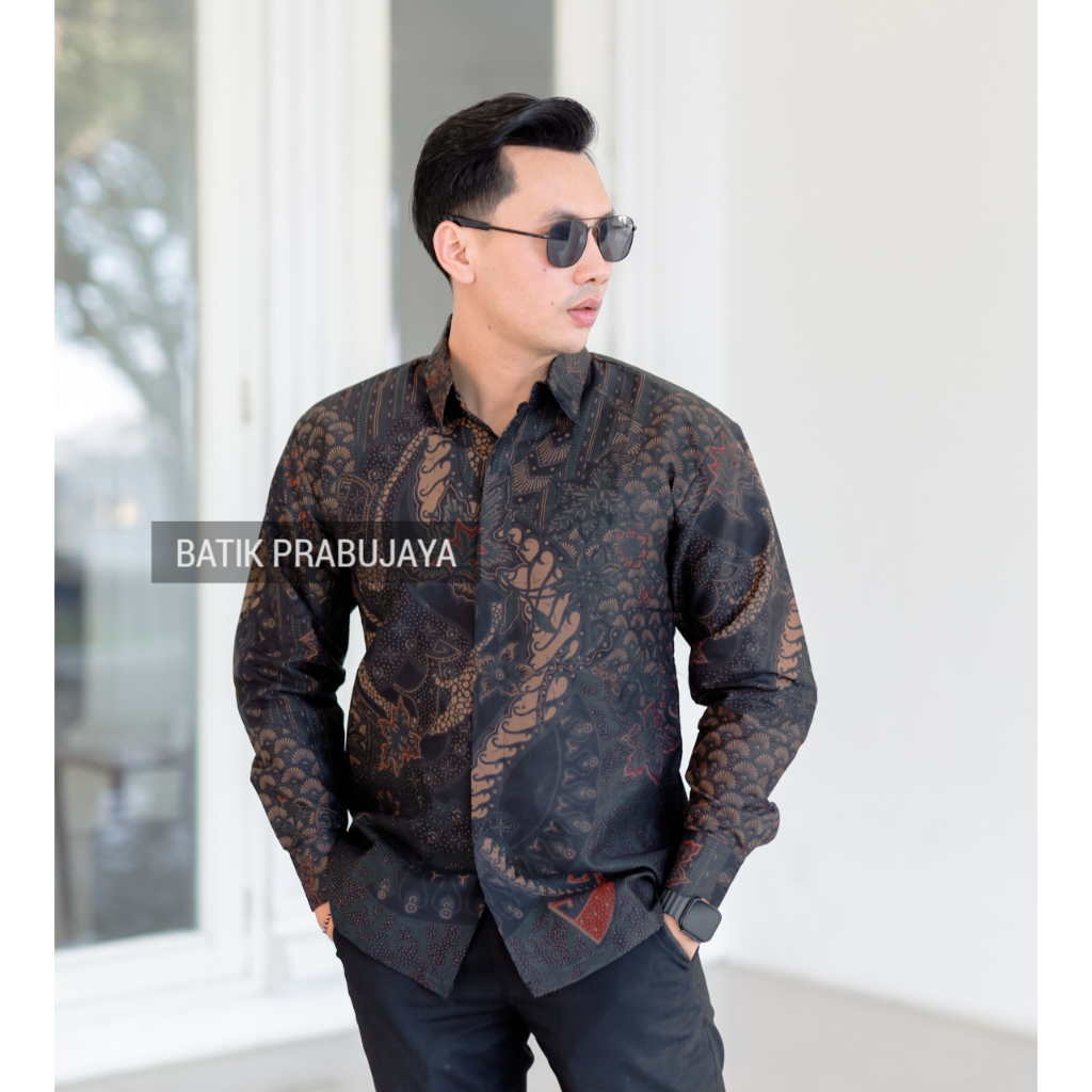 SENOPATI HITAM Kemeja Batik Pria Lengan Panjang ern Premium Mewah Dewasa Full Furing Katun Halus