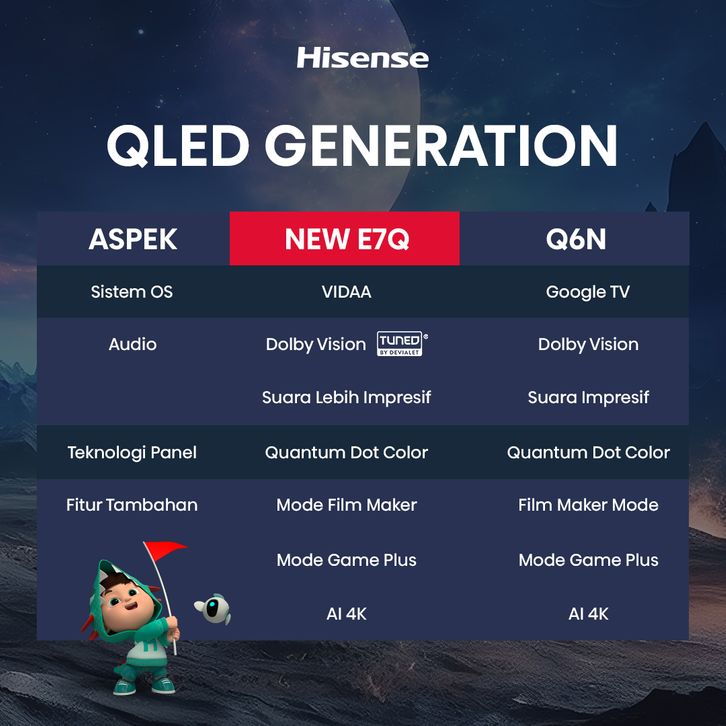 Hisense TV 65 inch - 65E7Q AI 4K Vidaa system - QLED - Dolby Audio - Youtube/Netflix/Prime video - Game mode Plus