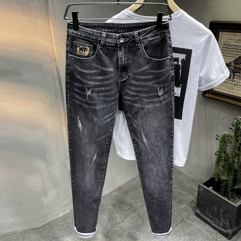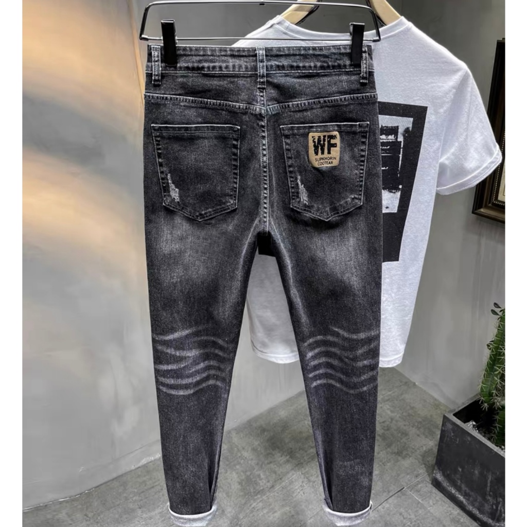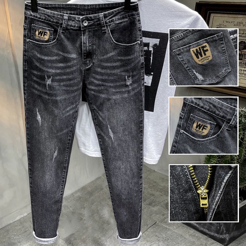 celana jeans pria sobek slim fit stretch denim selvedge cowok kekinian kasual fashion ripped jens laki laki robek keren jumbo pants korean style