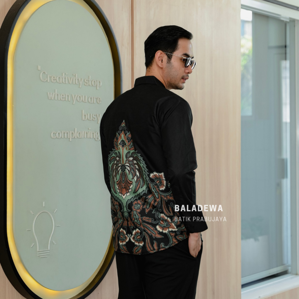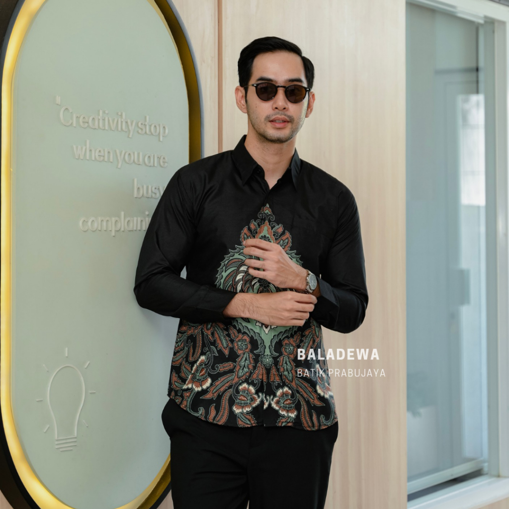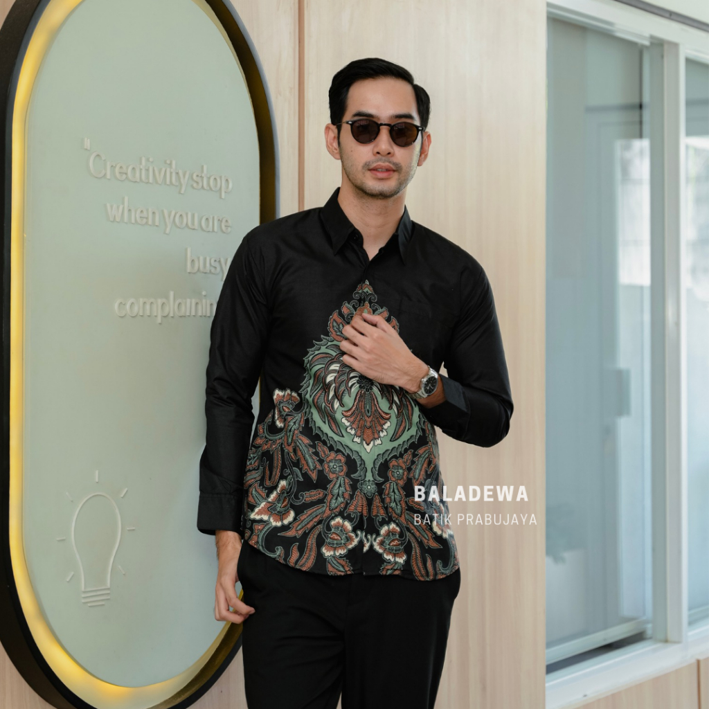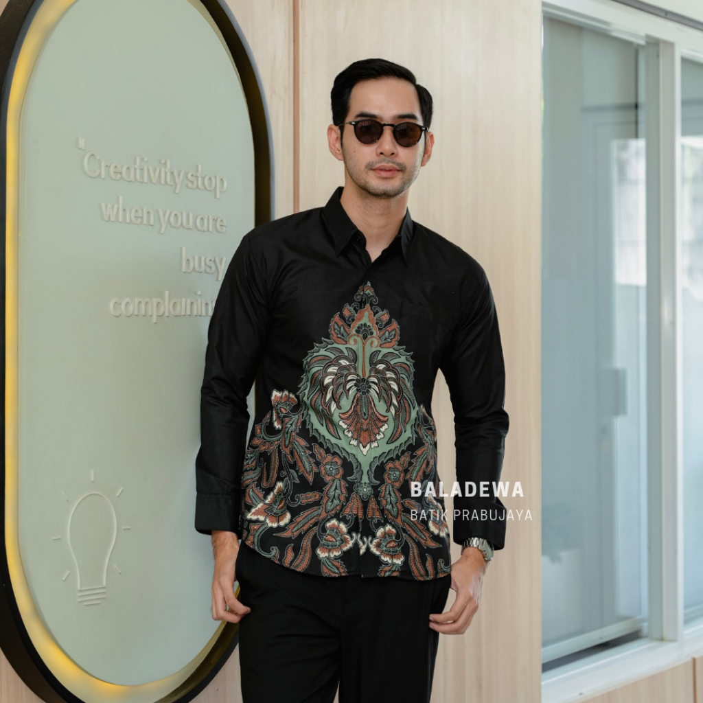 BALADEWA Batik Pria Slimfit Kondangan Kerja Motif ern Premium Lengan Panjang Full Furing Katun Halus