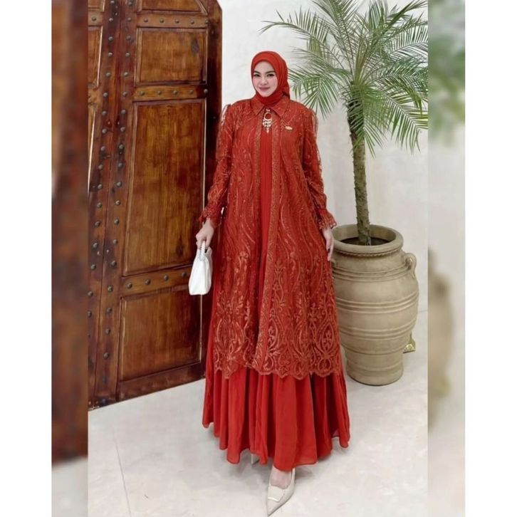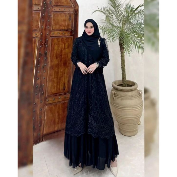 GAMIS SALUNA BROKAT TILLE AKAR PREMIUM BAHAN CERUTY BABYDOLL FULL PURING GAMIS KONDANGAN MEWAH OOTD
