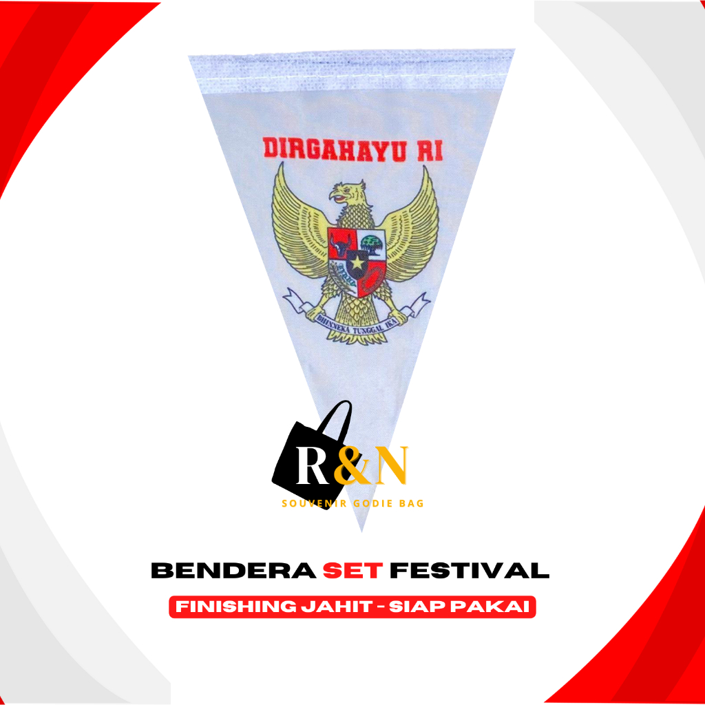 Bendera Hias 17 Agustus 6 Meter Motif Merah Putih 40 lembar Bahan Spunbond, Veles/saten Sudah Di Jahit & Siap Pakai