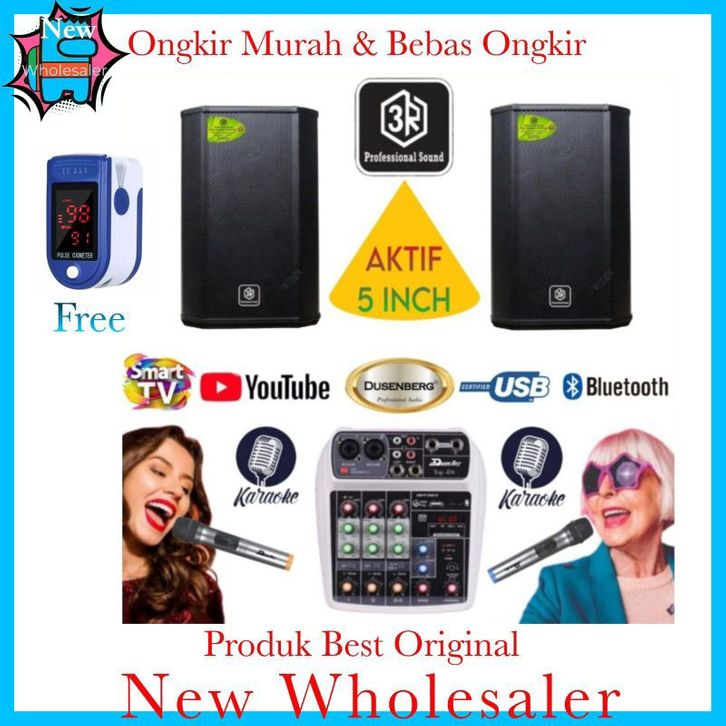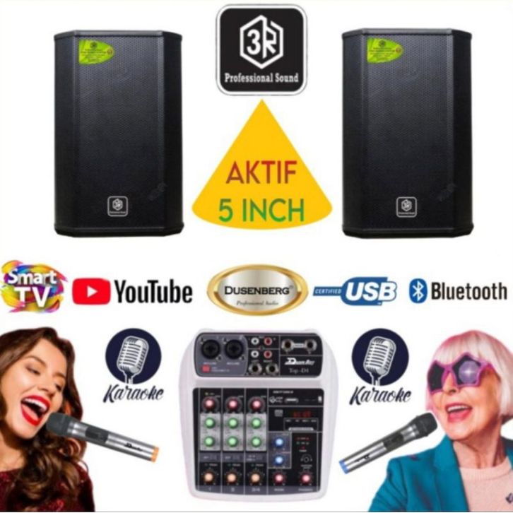Paket karaoke 3R Aktif 5 inch Mixer 4 channel Mic wireless youtube