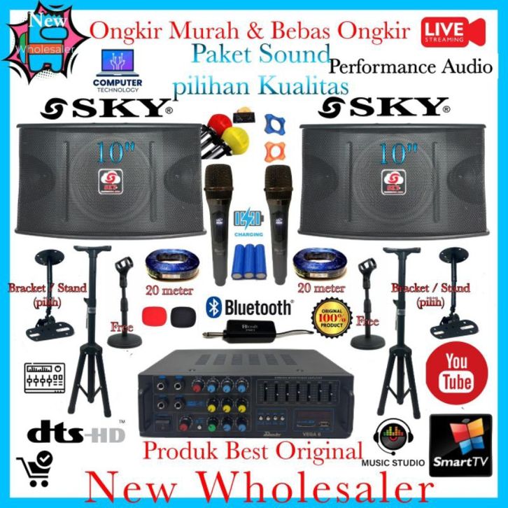Paket Sound system speaker 10 inch karaoke pilihan original sky Sk106pa Kualitas super terbaik