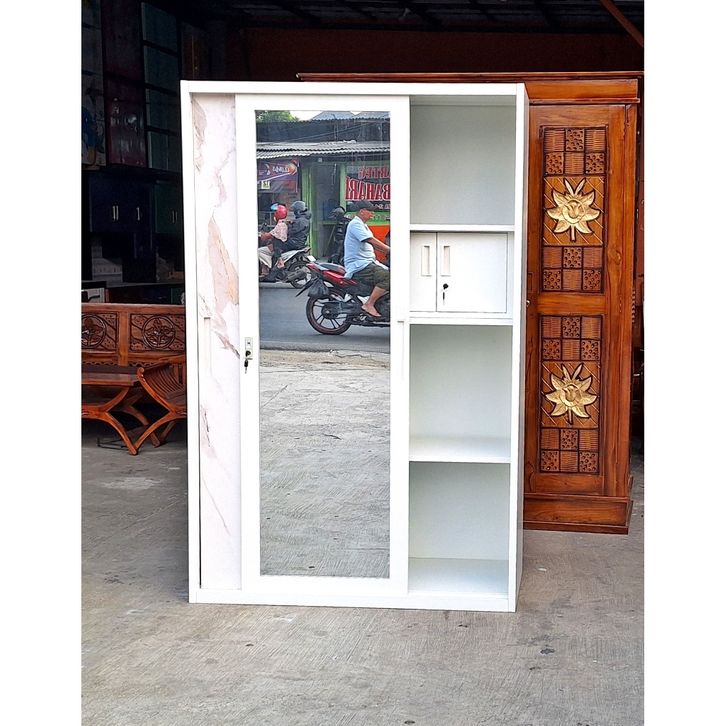 Lemari Besi Jumbo 2 Pintu Motif Sliding Lemari Pakaian Furniture