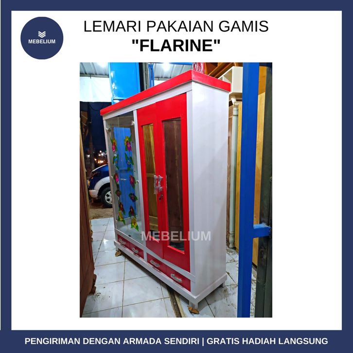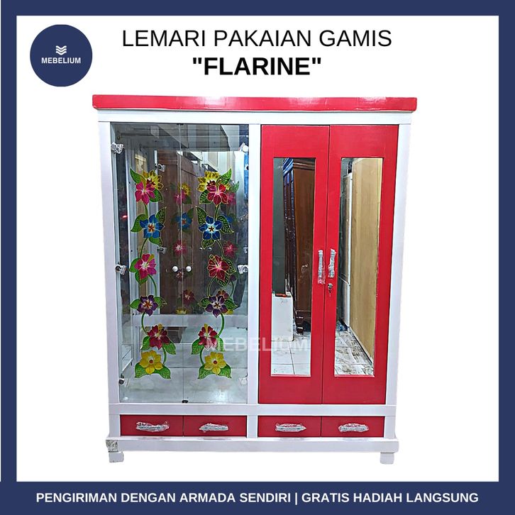 [NEW ARRIVAL] Lemari Pakaian Gamis 4 Pintu Flarine Merah Putih Bahan Kayu Blockteak Kuat Anti Air Anti Rayap [Mebelium]