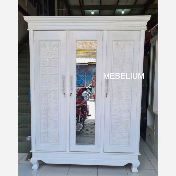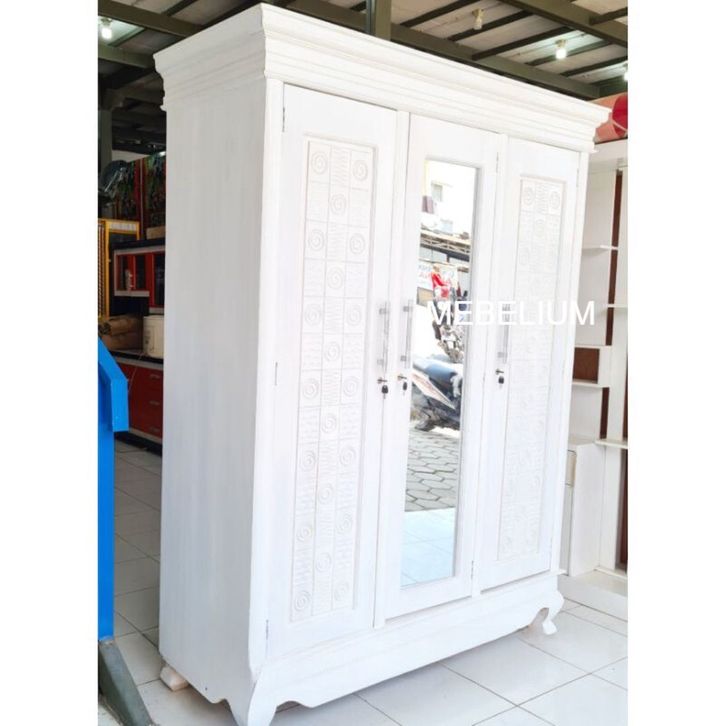 Lemari Pakaian Jati 3 Pintu Hijab Warna Anti Air Anti Rayap [Mebelium]