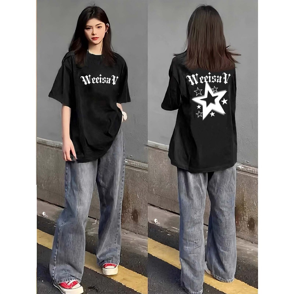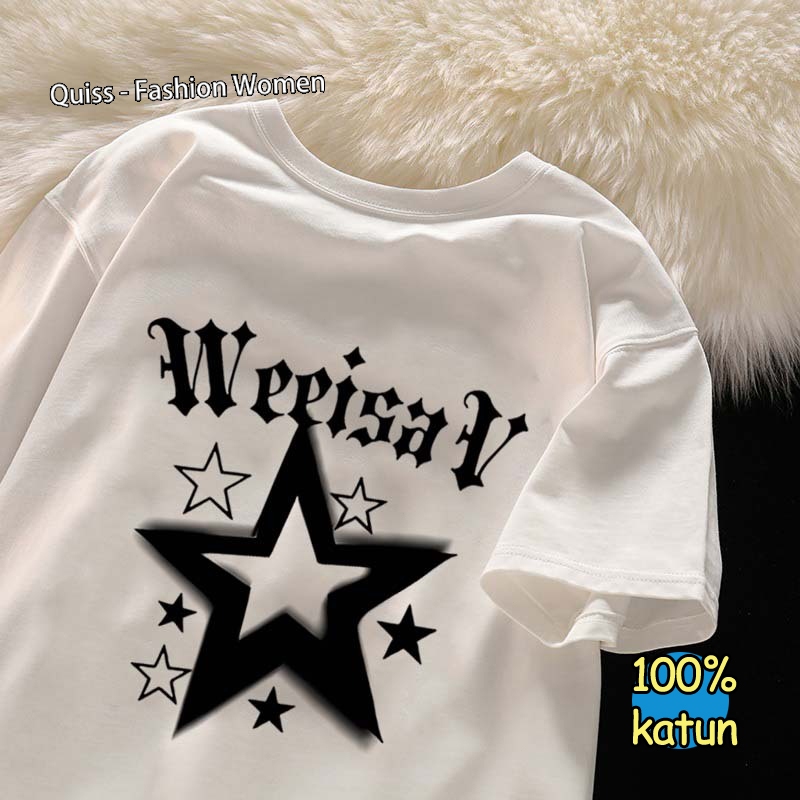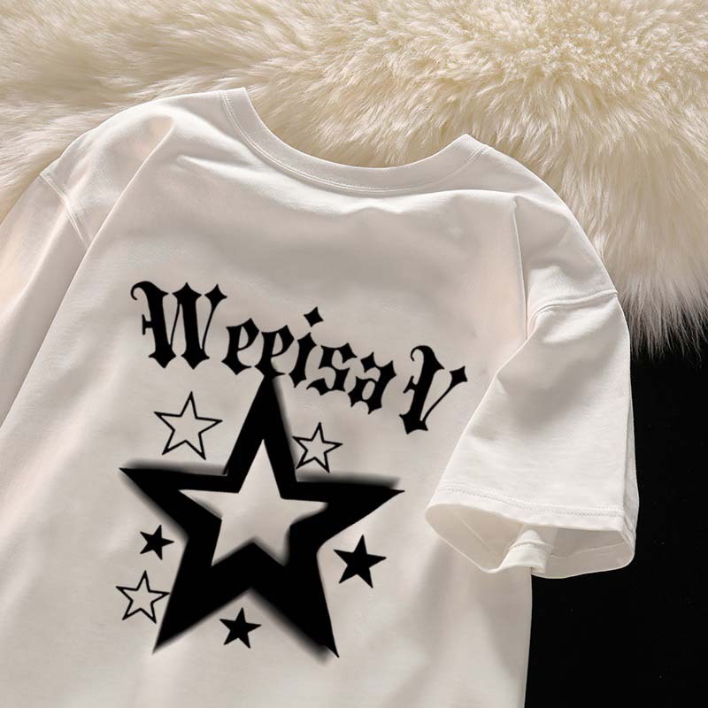 Quiss baju atasan wanita terbaru Kaus lengan pendek bintang musim panas tren Amerika wanita 2025 atasan ramping longgar