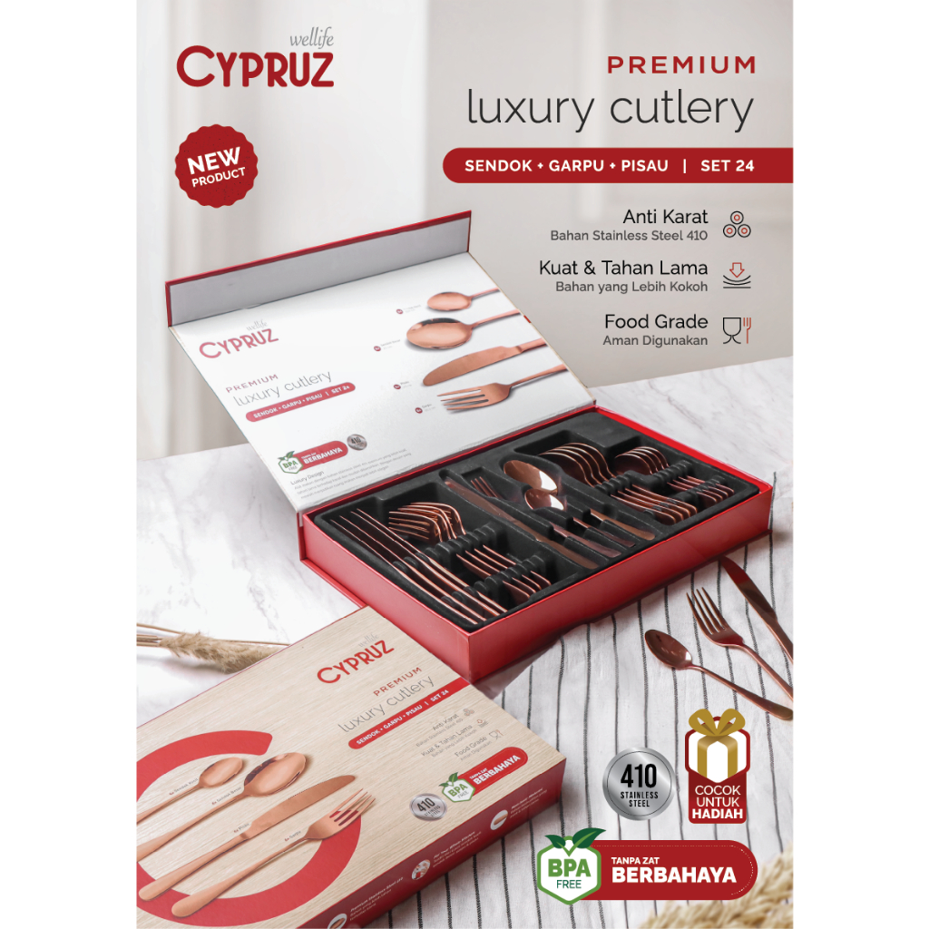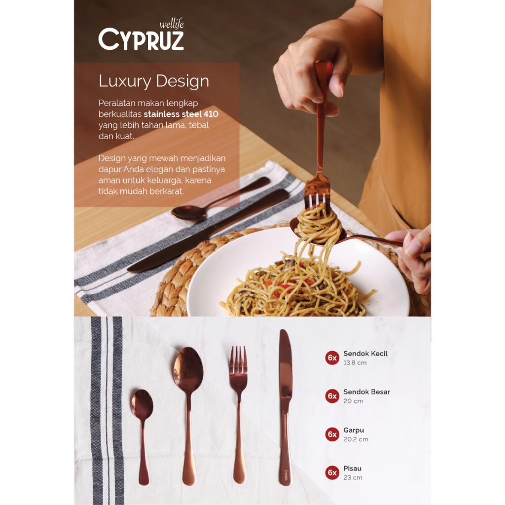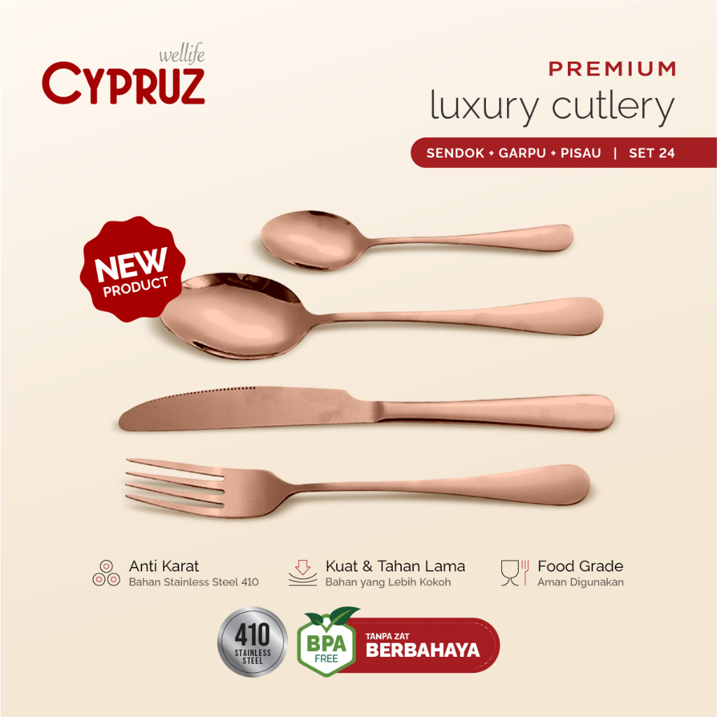 Cypruz Set Sendok Garpu Pisau Rose Gold 24 pcs Luxury Cutlery Rose Gold Set 24 pcs