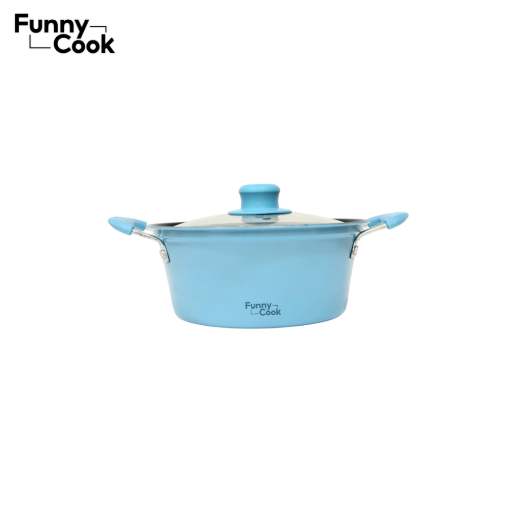 FUNNYCOOK Panci Sup Enamel Tutup Kaca / Diameter 20cm 22cm