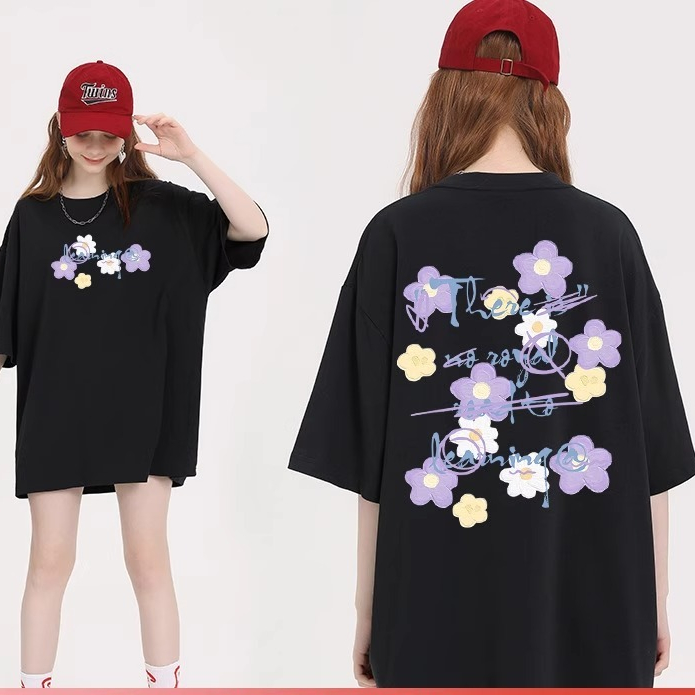 Kaos wanita gaya Korean-Chic motif bunga, lengan pendek katun longgar serba cocok, harga terjangkau, baru musim panas 20