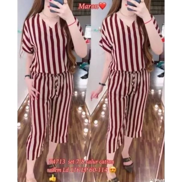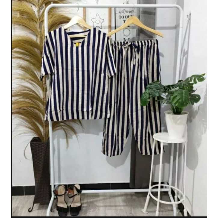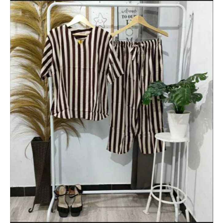 Setelan Andin Motif Salur Setelan Baku Piyama Terbaru 2025 One set lebaran Terlaris